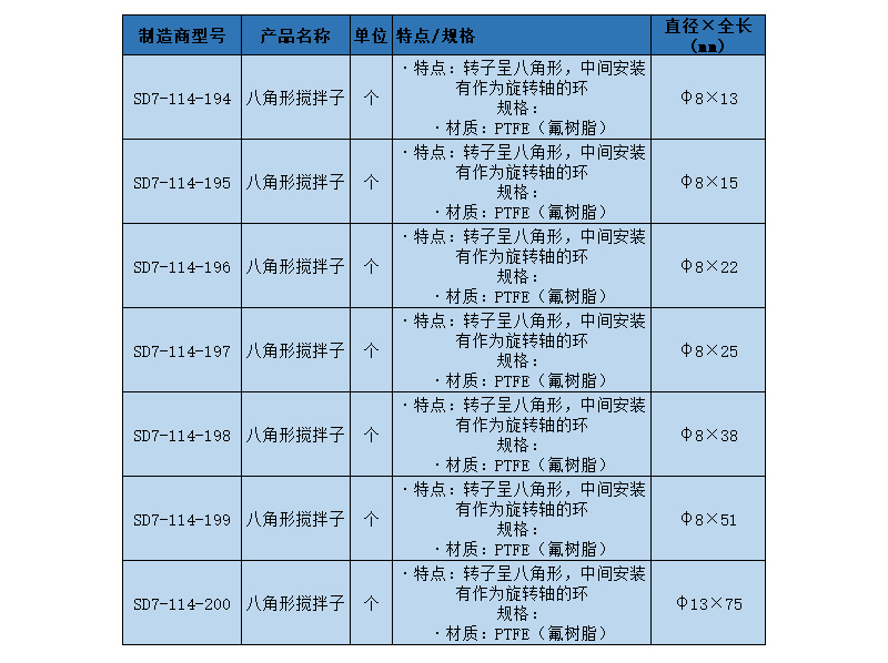 实验室产品 > 实验室通用耗材 > 搅拌子 > SLAMED 八角形搅拌子 φ8mm×15mm SD7-114-195