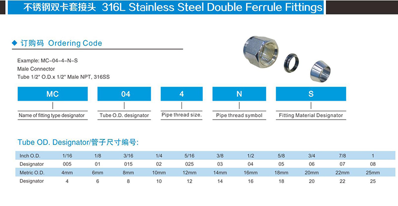 规格管外径3/8 螺纹尺寸G1/8 型号MC-03-1