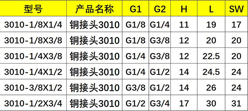 管阀 > 管件 > 直通接头 > 3010铜接头/AT91-100-1819