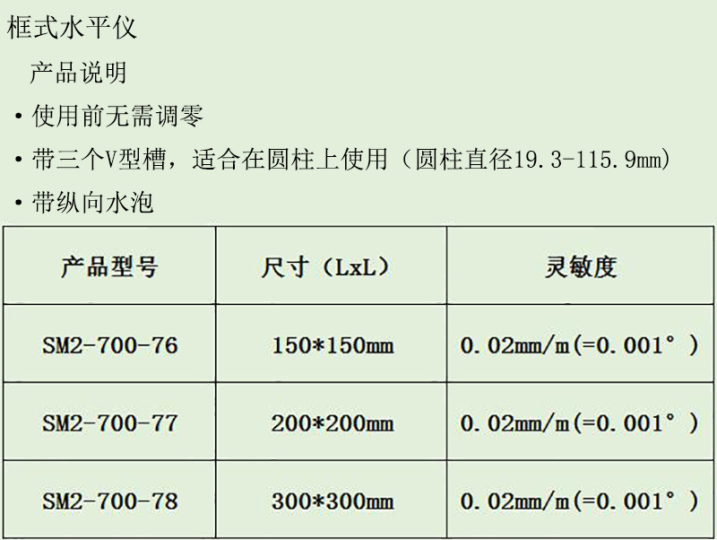 • 精密框式水平仪