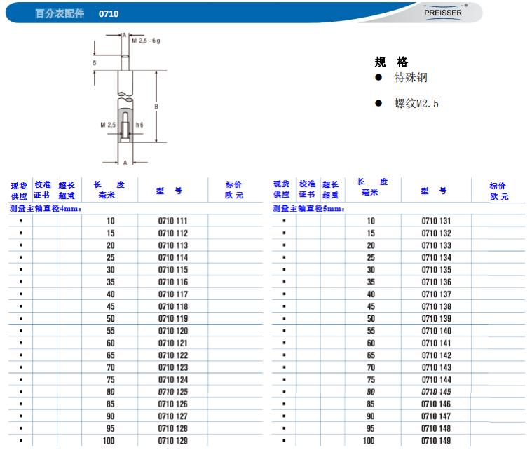 规格特殊钢螺纹M2.5 型号0710 112