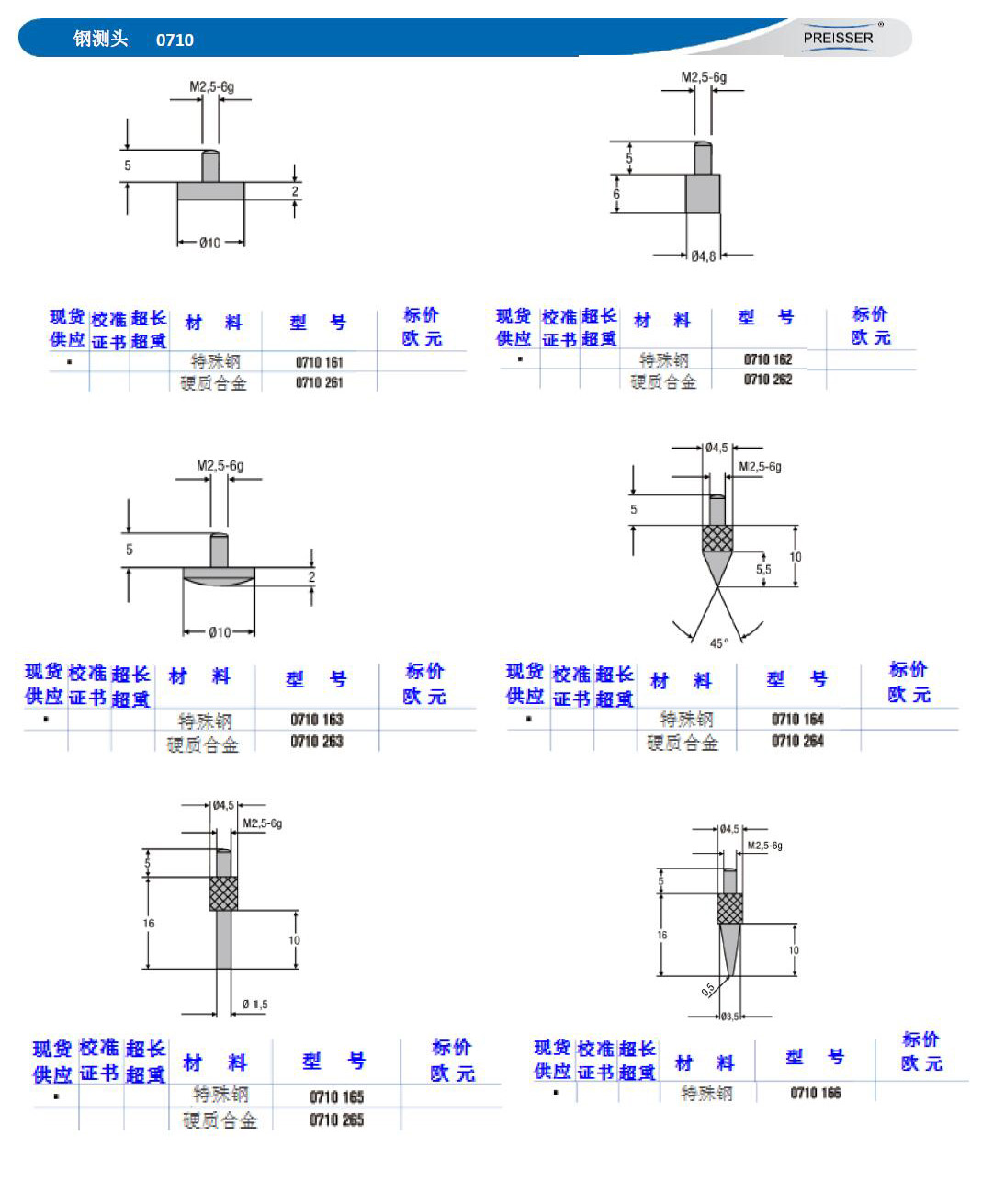 量具 > 测量量具辅件 > 量具附件 > 细圆柱形钢测头