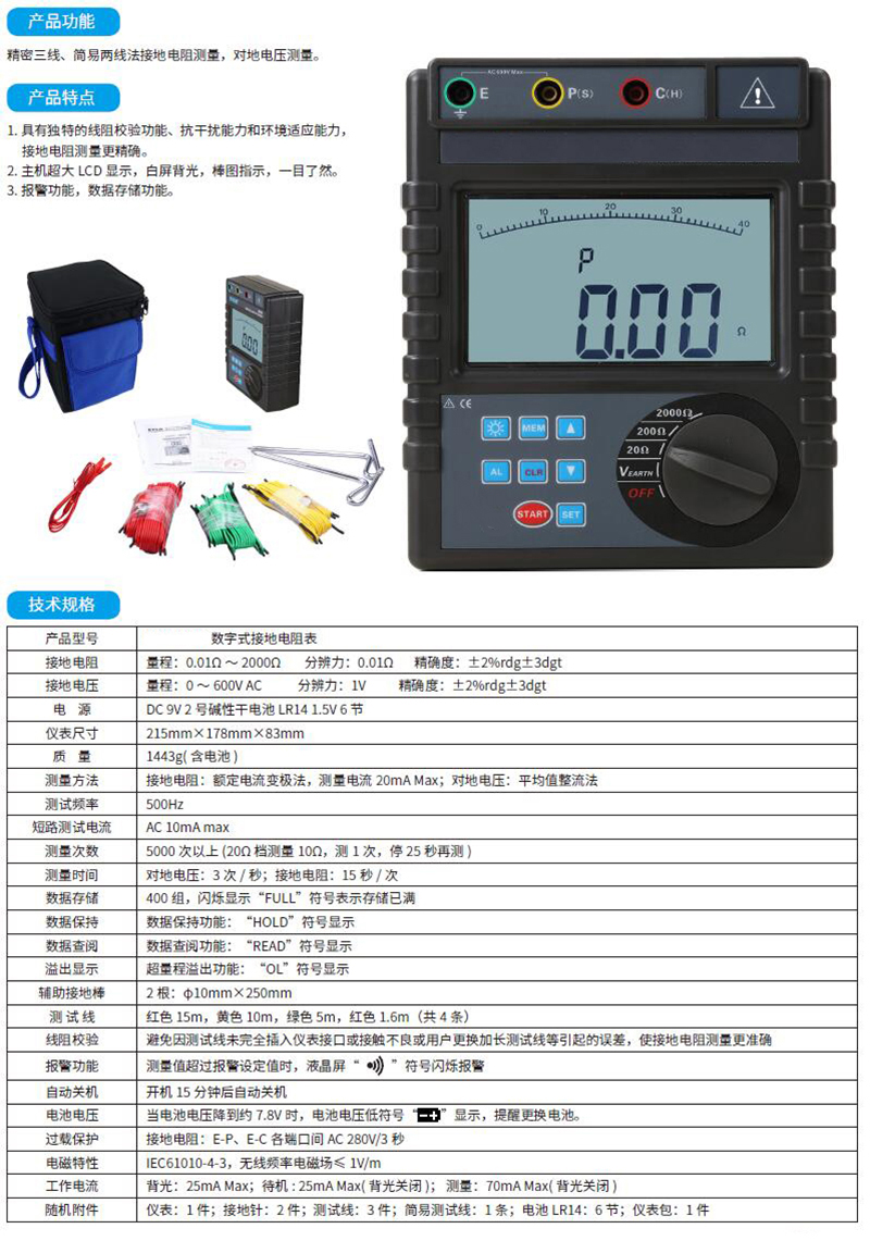 工业检测 > 安规测试 > 接地电阻测试仪 > 数字式接地电阻测试仪